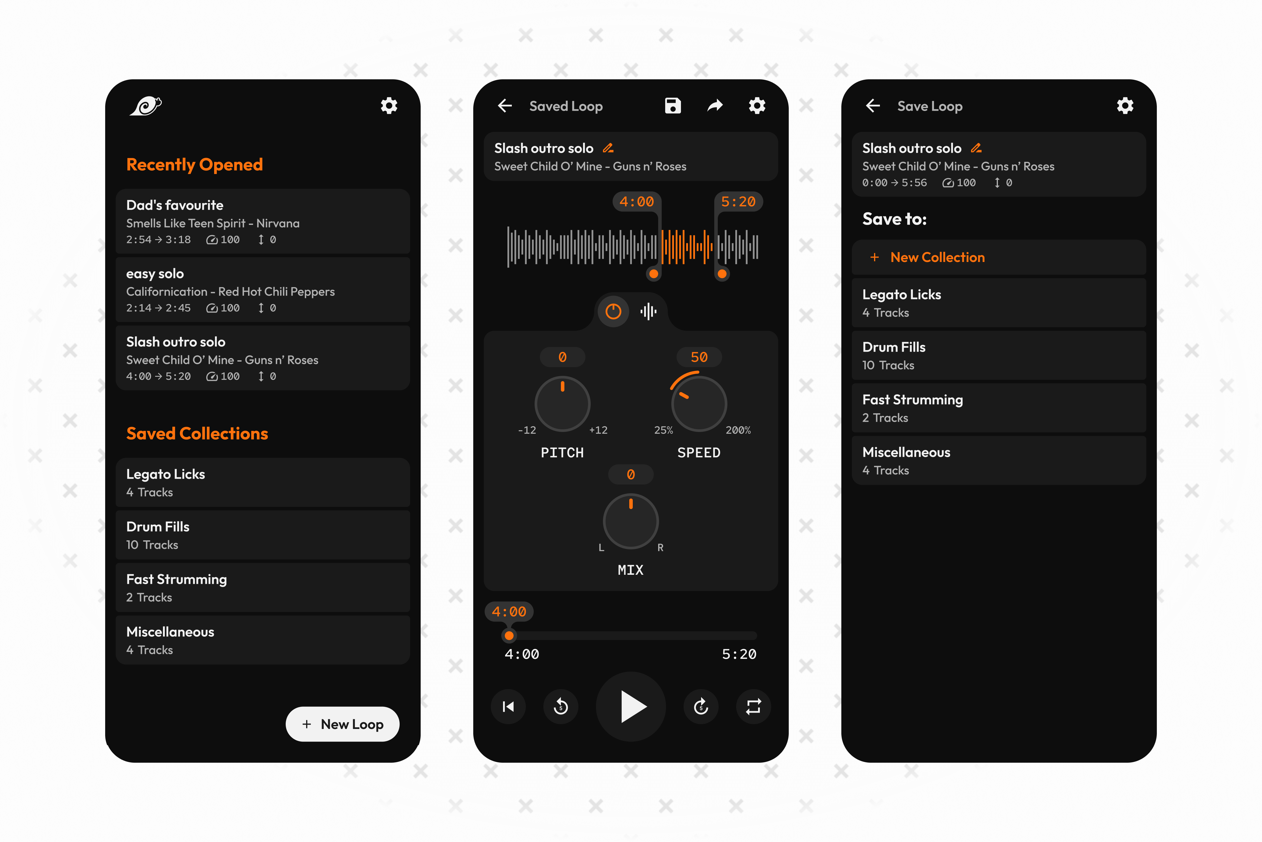 Users create new loops when practicing a new track, but more often than that, they want effortless access to previously created loops.