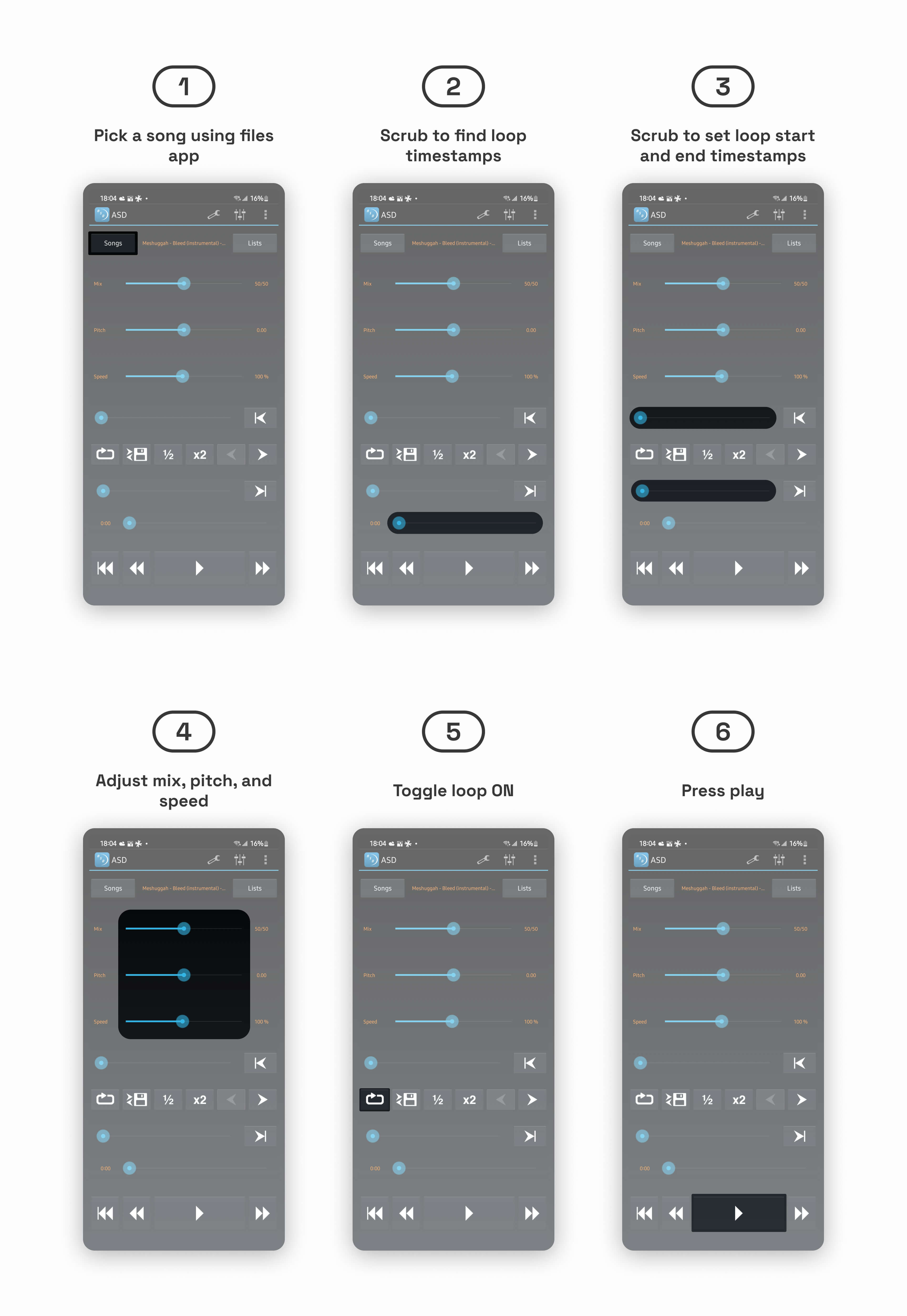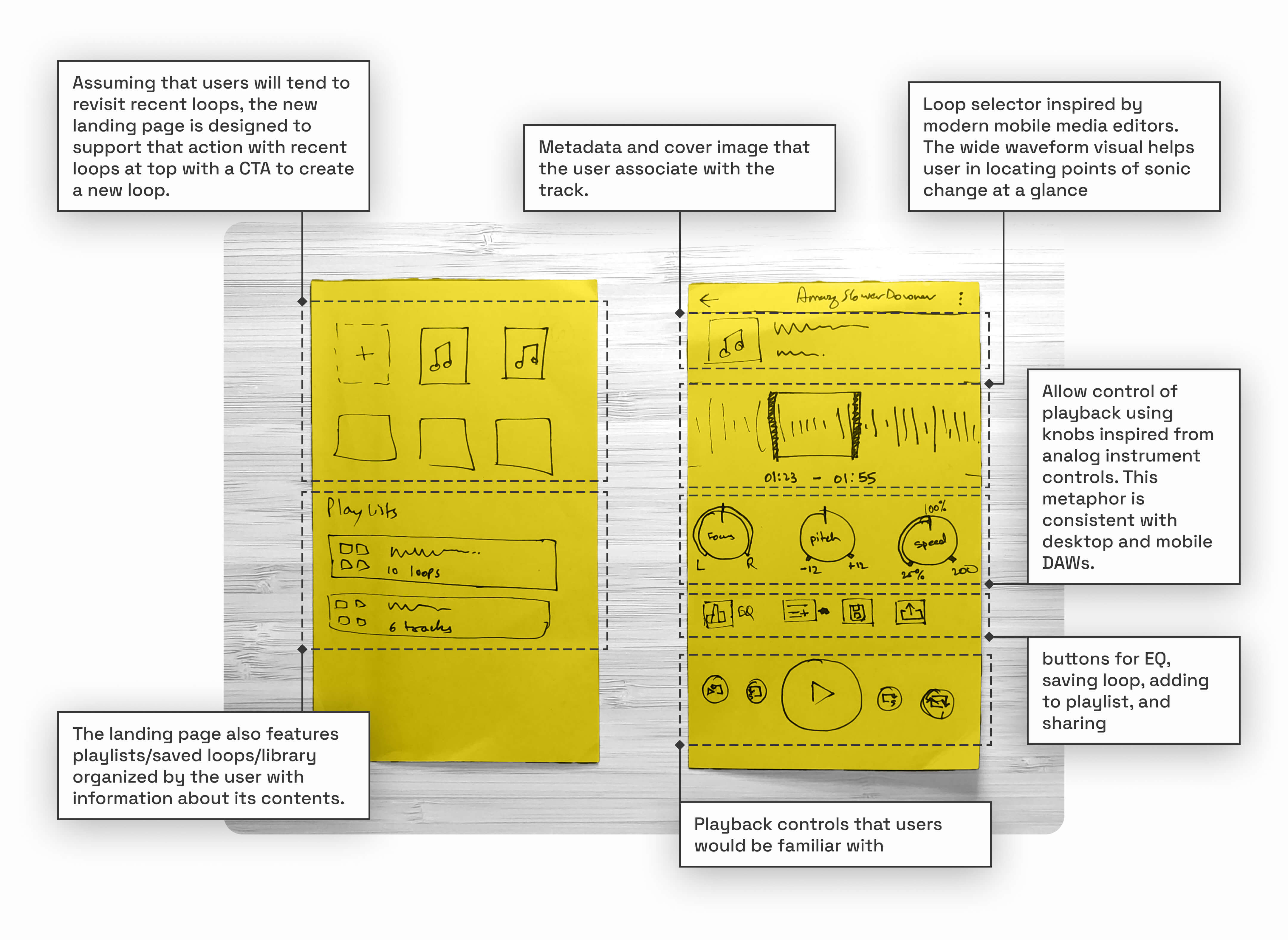In this app, user actions are more complex compared to typical mobile apps. This makes purposeful design decisions even more crucial. I improved upon the unique interactive features tested in the mid-fi prototype and made them highly intuitive, particularly the loop selector.