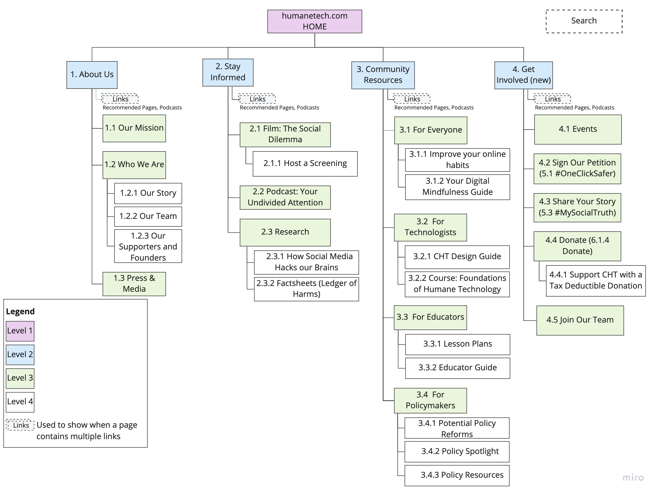 This project was driven by their mission to provide easier access to the information regarding humane technology and a clearer pathway to the call to action that drives that change.