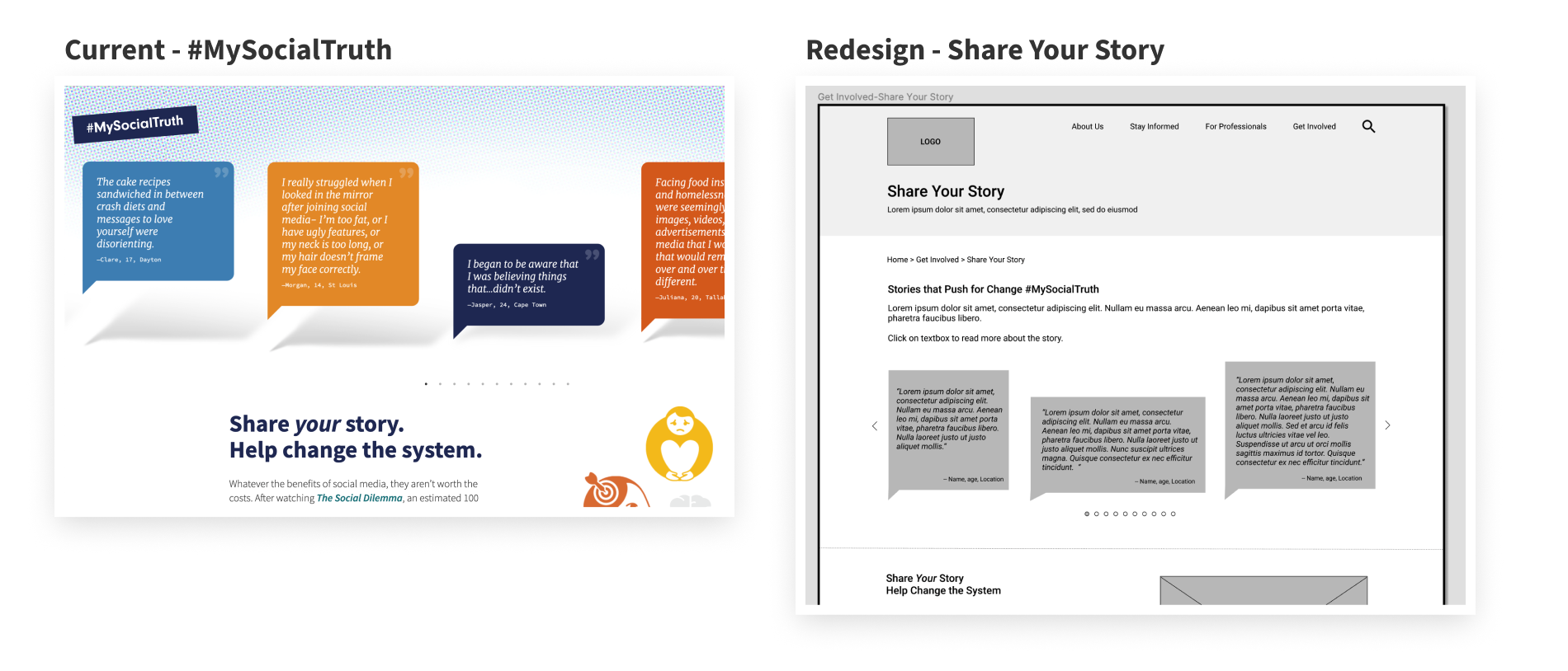 User’s found it difficult to understand titles such as “#MySocialTruth” without context. We changed it to “Share Your Story” to better convey its purpose.