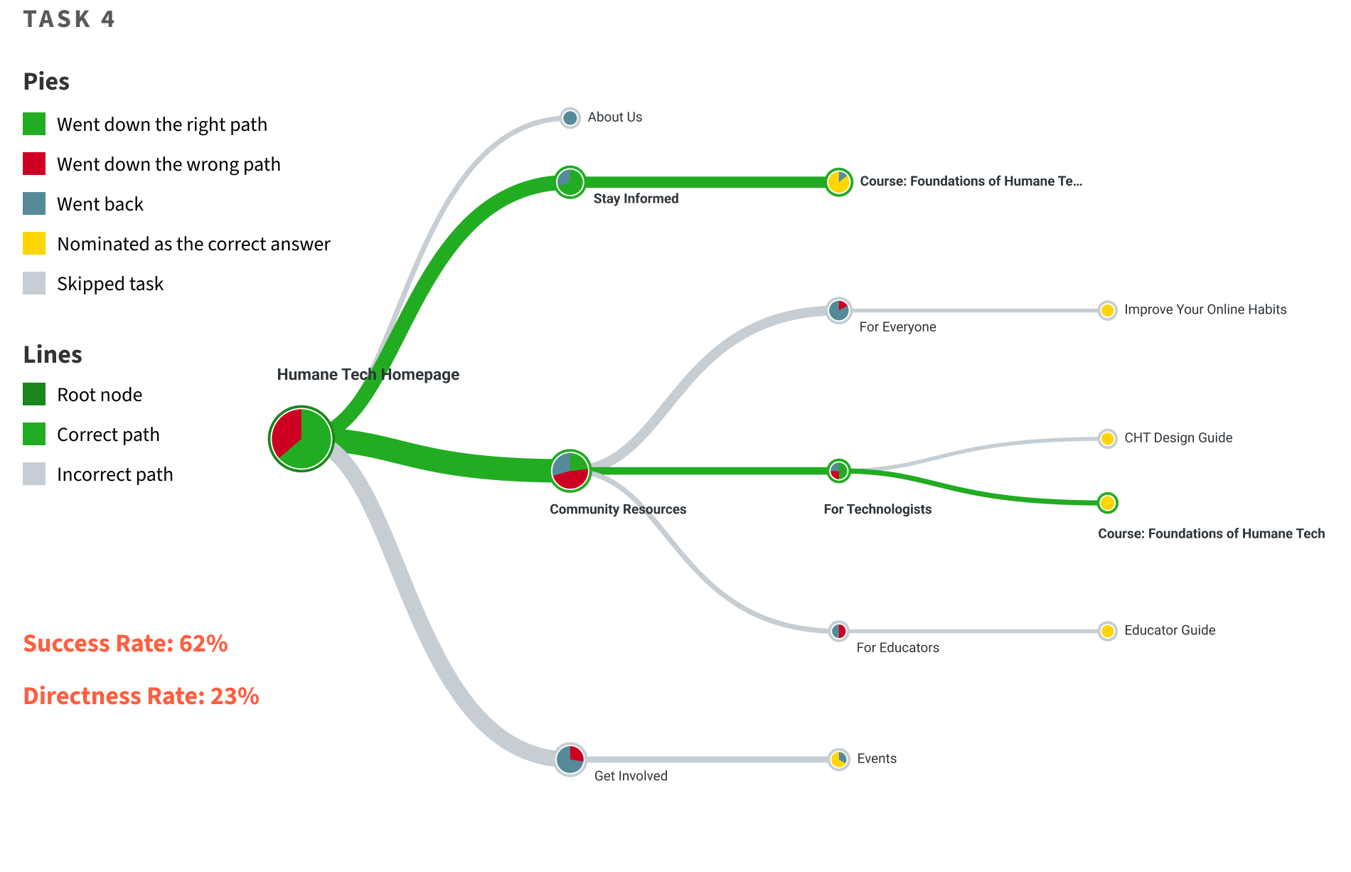 Hybrid card sort study. The preexisting categories were simply the primary navigation links and secondary links as cards. We decided to introduce a new card “Foundation of Humane Technology” under the “Course” category because on the website “Course” serves as a direct link and may observe growth as CHT adds more courses.