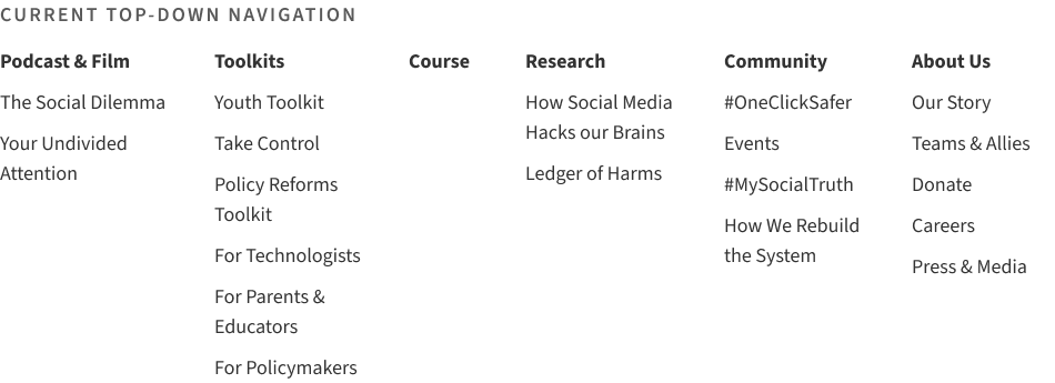 Center for Humane Technology aims to spread awareness about persuasive technology and mobilise professionals to combat its insidious effects. However, their website's poor IA interferes with this objective.